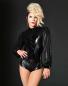 Wetlook Kurz-Overall von Patrice Catanzaro androgyner Schnitt mit langen weiten Ärmeln und Stehkragen.