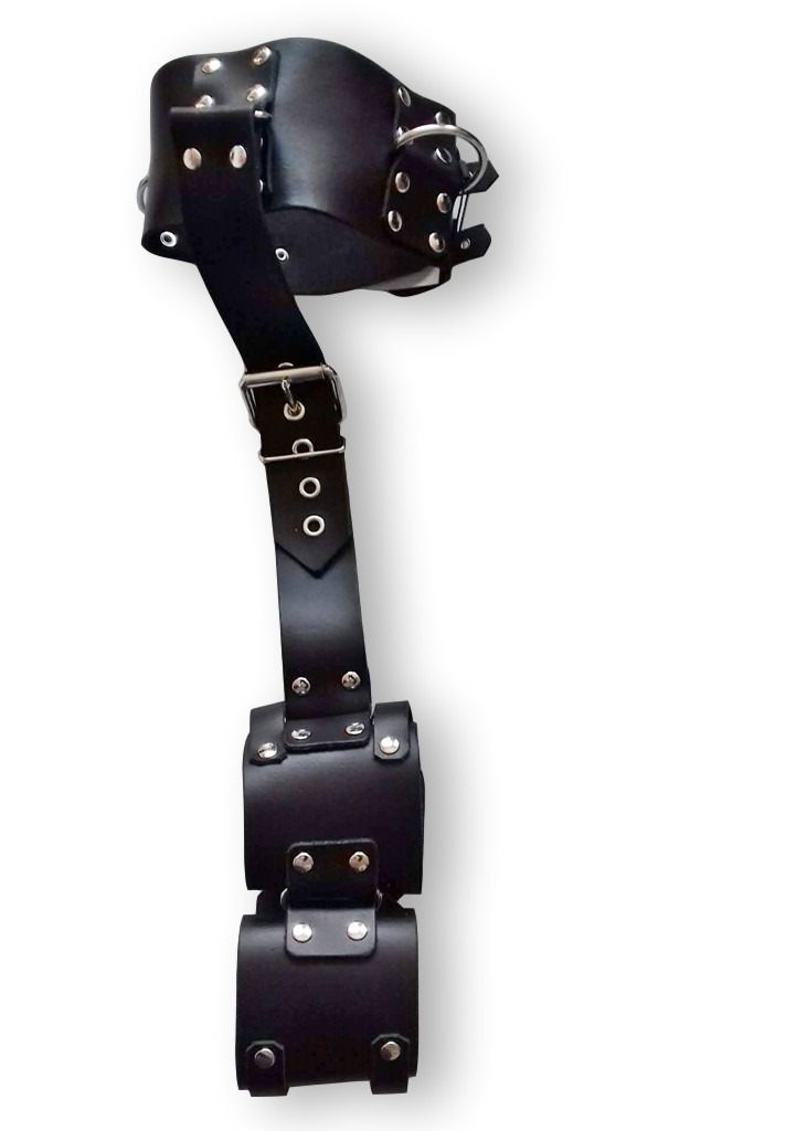 Bondage Set Hals - Handfesseln mit Riemen Verbindungsstück von Ledapol aus Spaltleder