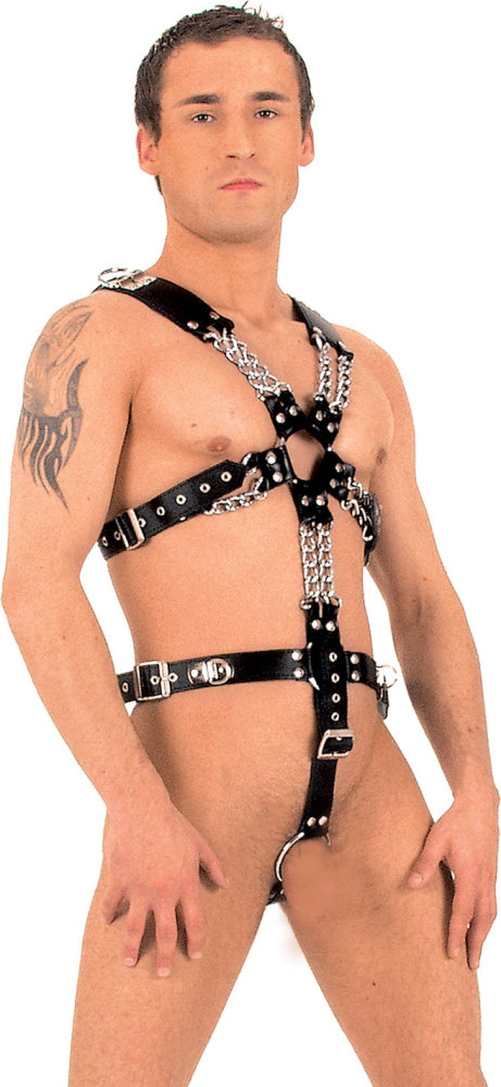 Herren Harness von Ledapol aus Spaltlederriemen,