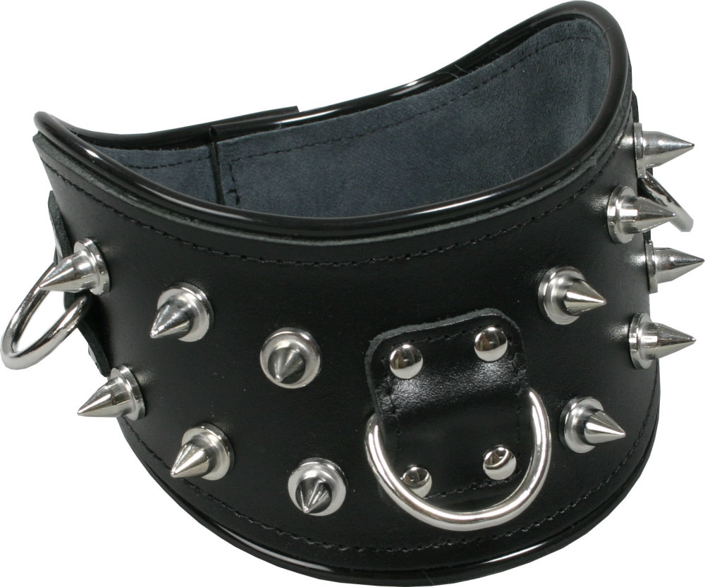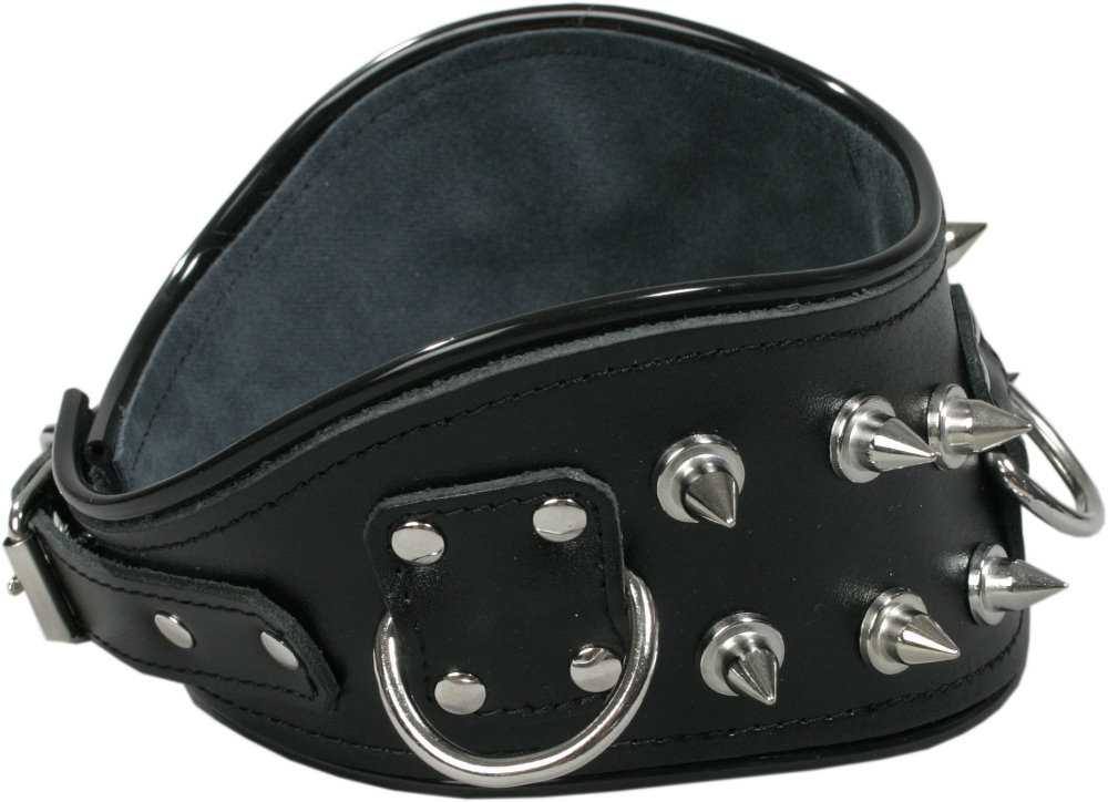 Stabiles attraktives Spaltleder Halsband von Ledapol mit 15 mm langen Spikes verziert.