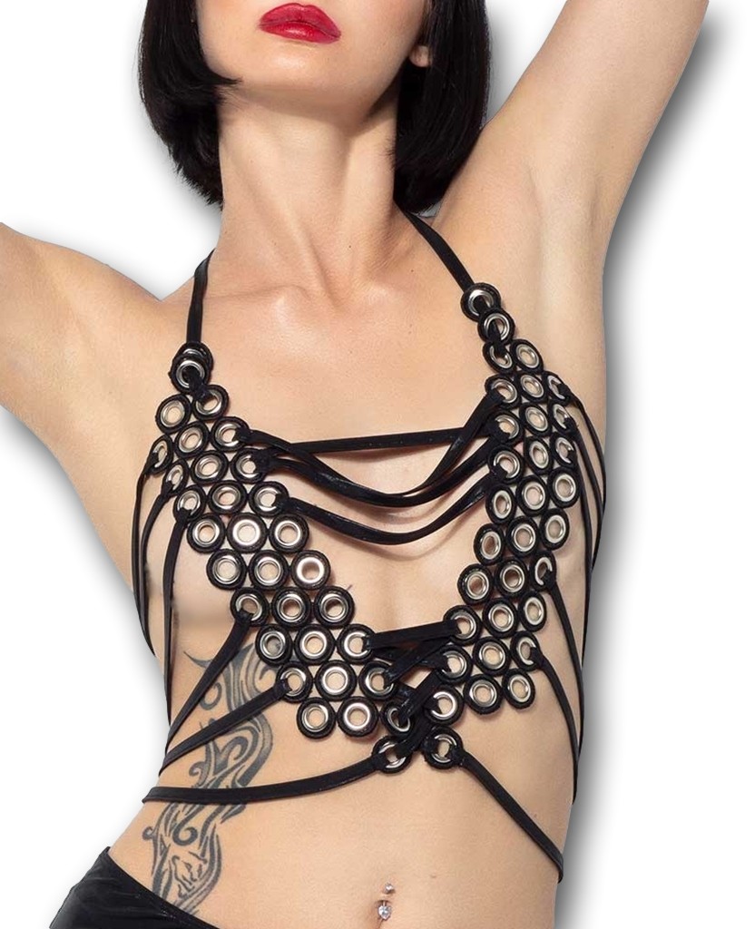 Das Top passt in die Kinky Steampunk Szene und ist auch als attraktive Dancewear geeignet.